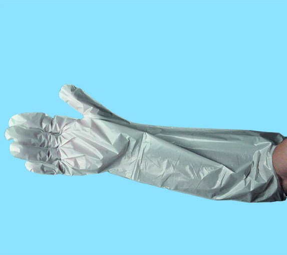 Dünner Handschuh für Hygienezwecke. Schutz bis zum Ellbogen. Weiß eingefärbt.